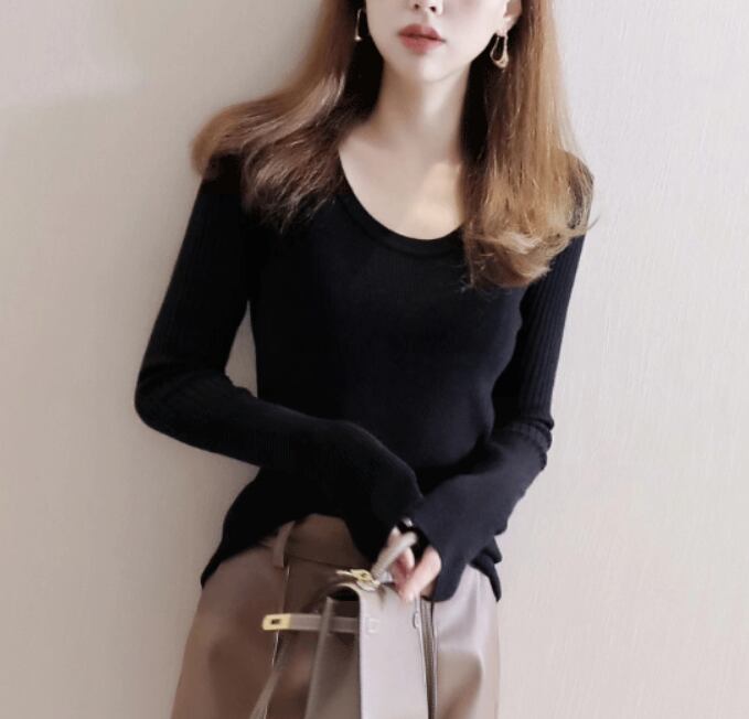 ニットトップス トップス ニットソー セーター 袖あり 長袖 Uネック ラウンドネック 襟なし スリム タイト 細身 伸縮性 ニット 薄手 お得 かわいい 大人可愛い きれいめ 大人 おしゃれ お洒落 大人女子 ガーリー 存在感 スマート ベーシック 無地 春 秋 冬 ロングシーズン 10代 20代 30代 40代 レディース 女性用 ママ ママコーデ 学生 デート お出かけ 女子会 休日 お茶会 ランチ ショッピング 着回し 普段使い 重ね着 モテ 細見え スタイルアップ 華奢見え M L ブラック