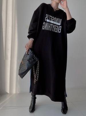 一枚でキマる、トレンド感あるスウェットワンピース登場。ロング丈で体型カバーもできる優れものです。また、サイドスリットが入ることで、動きにくさがなく、足さばきもよくなります。1枚で着ても、レギンスやスキニージーンズと合わせても可愛い、優秀なアイテムです。