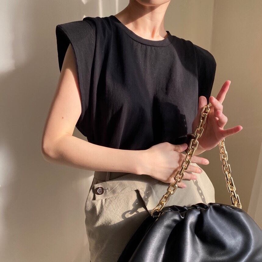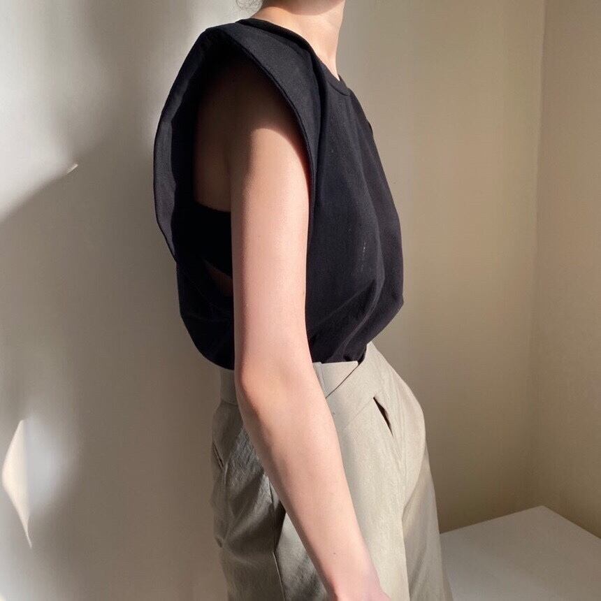 キャップスリーブのようなデザインのカットソーは、シンプルながらも存在感たっぷりな1枚。スリーブ部分がたっぷりとしたサイズ感でデザインされ、二の腕の体型カバーにも。アームホールは大きく、脱着時にもラクラク。アクティブな方にもおすすめです。
