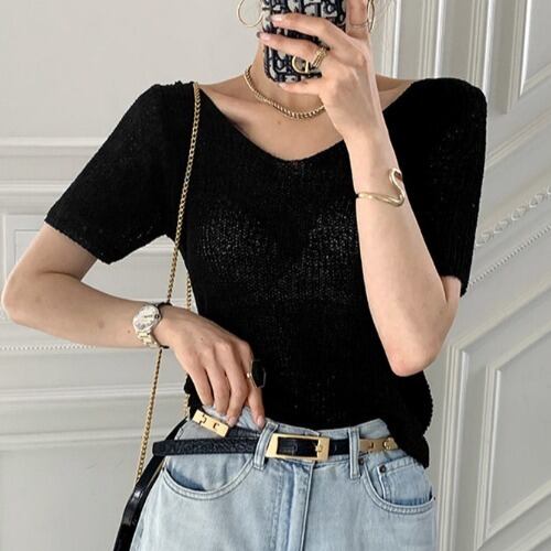トップス ニットソー セーター レギュラー丈 袖あり 半袖 Vネック ボートネック 透け感 ニット 薄手 きれいめ シンプル カジュアル おしゃれ お洒落 かっこいい レトロ こなれ感 ラフ ルーズ 個性的 クール シック ラグジュアリー 抜け感 ベーシック 無地 夏 10代 20代 30代 女性用 オフィス ビジネス OL 通勤 デート お出かけ 旅行 合コン コンパ カフェ 着回し 重ね着 レイヤード 楽ちん 体型カバー モテ