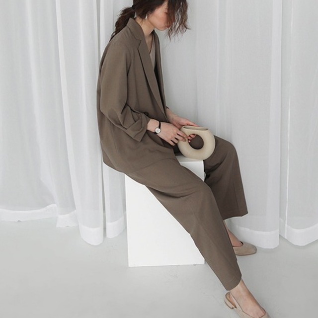 セットアップ スーツ ジャケット ボトムス パンツ 上着 羽織り スーツジャケット ワイドパンツ ストレートパンツ ロング ロング丈 袖あり 長袖 襟付き ストレート ワイド ポケット 前開き コンサバ 上下セット 2点セット ツーピース お得 シンプル カジュアル おしゃれ かっこいい レトロ こなれ感 ラフ マニッシュ ルーズ 都会的 クール シック フォーマル 抜け感 無地 春 夏 秋 レディース 女性用 お出かけ 休日 パーティー