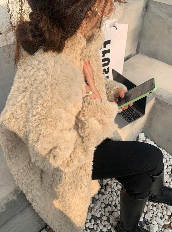 寒い冬にぴったりのアウターとして、もこもこ素材がおすすめ!もこもこっとした素材感が可愛らしさを引き立てます。ボタンを首元まで閉じれば、しっかりしたスタンドカラーになるから冷たい空気から体を守ってくれます。また変化のあるスタイリングを楽しむことができます。