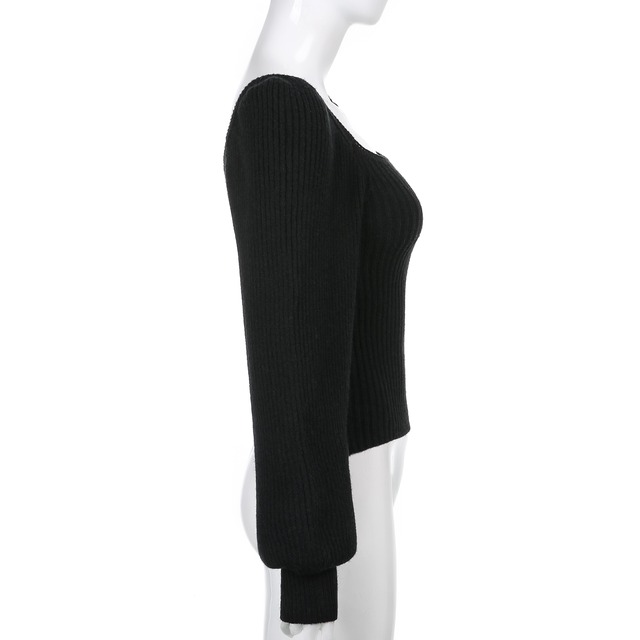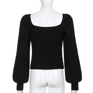 トップス ニットソー セーター レギュラー丈 袖あり 10分袖 ボリューム袖 パフスリーブ Uネック 襟なし ノーカラー コンサバ ニット リブニット シンプル カジュアル おしゃれ お洒落 レトロ こなれ感 ラフ キュート ルーズ 都会的 セクシー ラグジュアリー 抜け感 無地 秋 冬 20代 30代 40代 レディース 女性用 オフィス ビジネス OL 通勤 デート お出かけ 休日 旅行 バカンス ショッピング 合コン 普段使い モテ