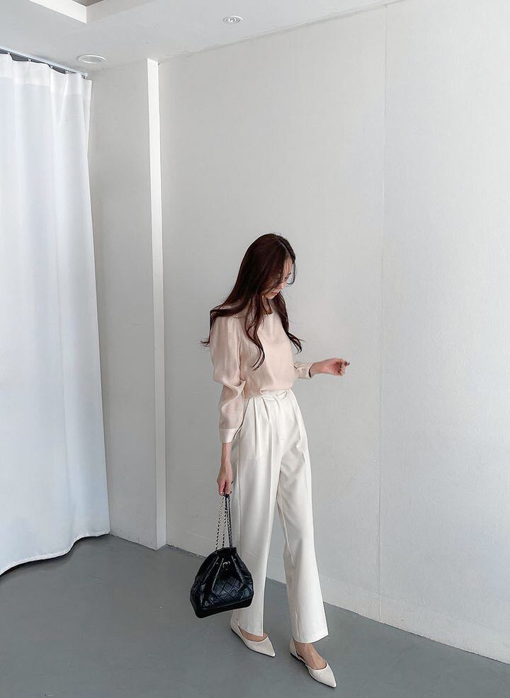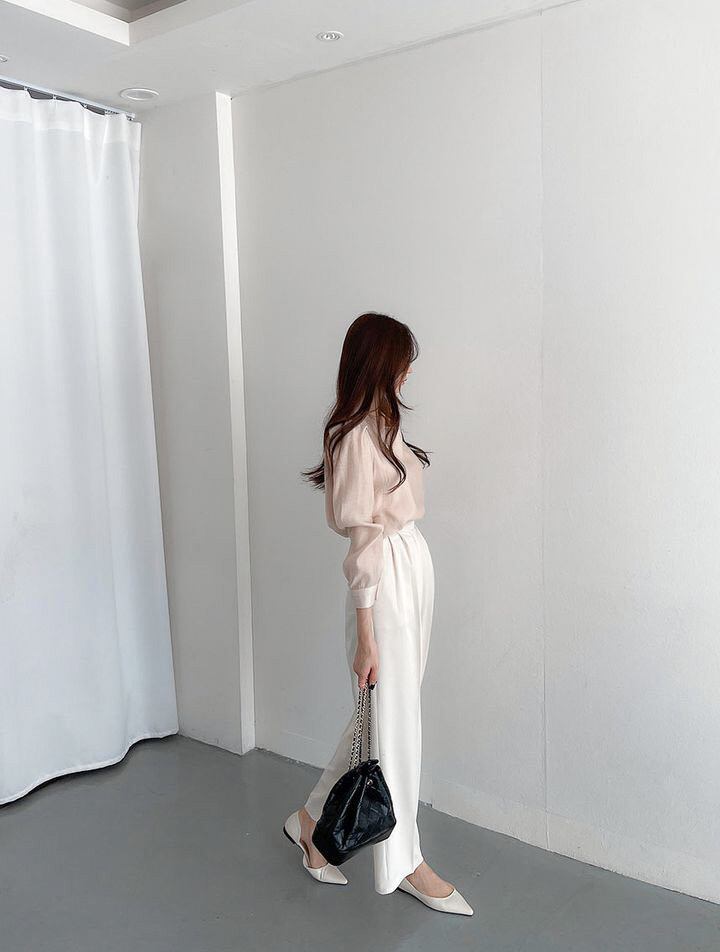透け感がある素材とパワーショルダーが、大人の女性ならではの存在感を演出します。ビジネスシーンからカジュアルまで、幅広いコーディネートに対応でき、ロングシーズン着られるのも嬉しいポイント。抜かりない大人女性にぜひおすすめしたい一枚です。