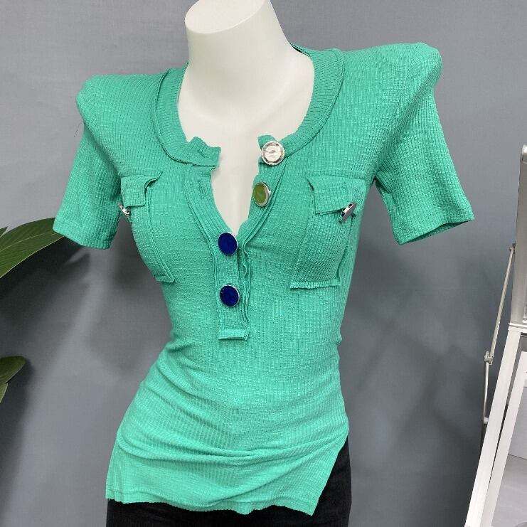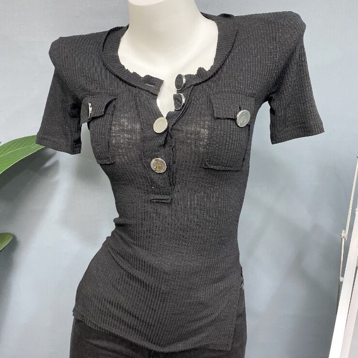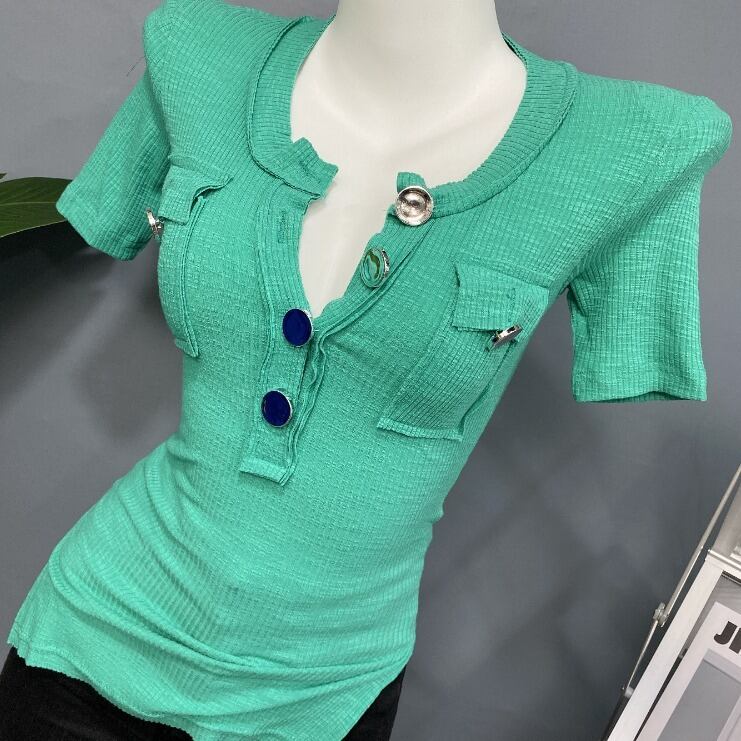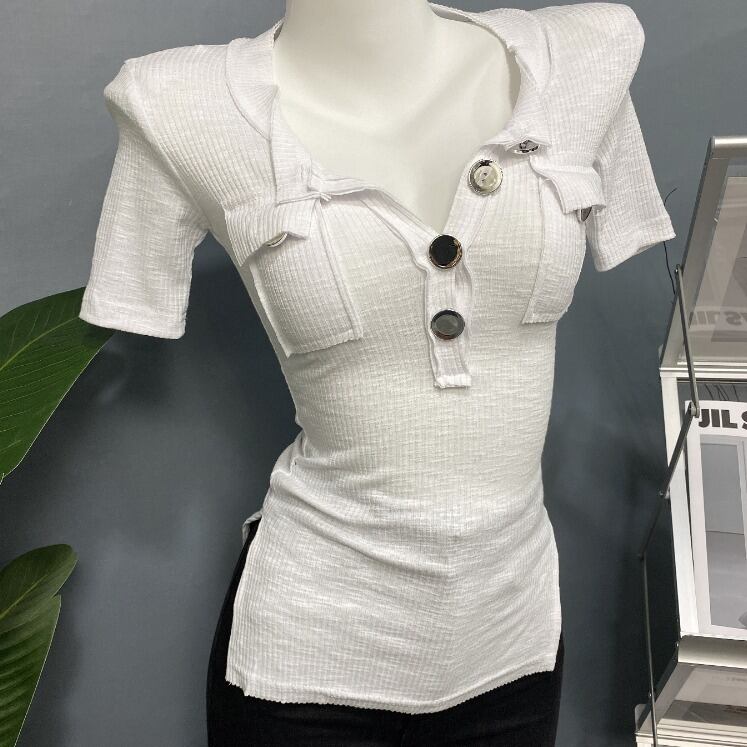 トップス ポロシャツ 袖あり 半袖 ラウンドネック 襟なし ノーカラー スリム タイト 細身 前開き 薄手 シンプル カジュアル 大人 おしゃれ レトロ こなれ感 スポーティー あざとい ラグジュアリー 抜け感 アメリカン風 無地 夏 20代 30代 レディース 女性用 デート お出かけ 散歩 休日 海 バカンス カフェ 着回し 普段使い 韓国系 オルチャン モテ トレンド 定番 フリーサイズ ワンサイズ ホワイト ブラック イエロー