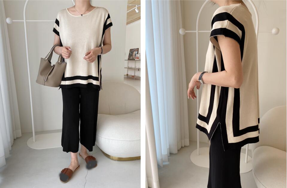 セットアップ トップス ボトムス パンツ カットソー ロングパンツ ワイドパンツ ロング ロング丈 袖あり 半袖 ラウンドネック 襟なし ノーカラー ストレート ワイド バイカラー 配色 上下セット ツーピース シンプル カジュアル おしゃれ お洒落 レトロ こなれ感 ラフ 個性的 抜け感 無地 柄 夏 10代 20代 30代 40代 50代 60代 レディース 女性用 お出かけ 休日 リゾート バカンス 着回し 普段使い 体型カバー