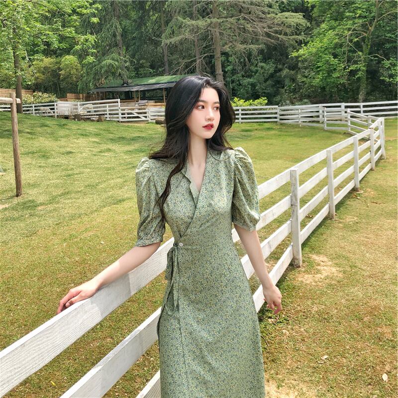 花柄ワンピース ワンピース ミモレ丈ワンピース ミモレ ミモレ丈 袖あり 5分袖 五分袖 パワーショルダー Vネック 襟付き リボン ウエストリボン ハイウエスト お得 かわいい おしゃれ お洒落 ラブリー キュート ガーリー 存在感 爽やか 柄 花柄 小花柄 フラワー 春 夏 秋 ロングシーズン 10代 20代 レディース 女性用 学生 デート お出かけ 女子会 ランチ ショッピング 着回し 普段使い 重ね着 韓国 韓国系 オルチャン モテ
