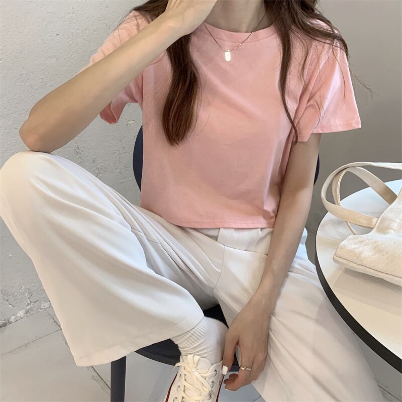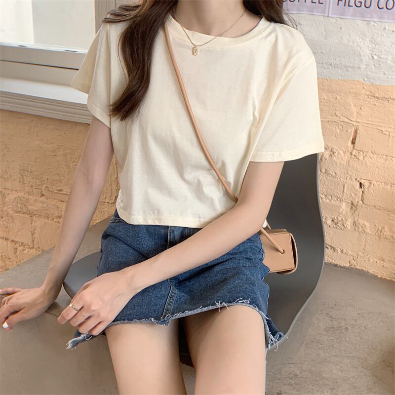 シンプルT トップス Tシャツ シャツ ショート ショート丈 袖あり 半袖 ラウンドネック 襟なし お得 かわいい シンプル カジュアル おしゃれ お洒落 ラフ ベーシック 無地 春 夏 秋 ロングシーズン 10代 20代 30代 レディース 女性用 学生 デート お出かけ 公園 女子会 休日 運動 ジム ヨガ アウトドア ランチ ショッピング 着回し 普段使い 重ね着 韓国 韓国系 オルチャン 定番 フリーサイズ ホワイト ブラック ブルー