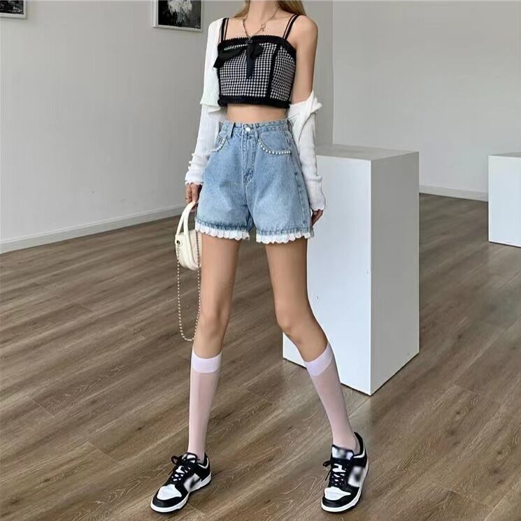 パンツ キュロット デニムパンツ ショート ショート丈 Aライン ポケット 前開き デニム ブルーデニム レース シンプル カジュアル おしゃれ レトロ こなれ感 ラフ ラブリー キュート ガーリー ルーズ 個性的 抜け感 無地 夏 10代 20代 レディース 女性用 学生 デート お出かけ イベント 合コン フェス 着回し 普段使い 韓国系 楽ちん 体型カバー モテ トレンド 3XL 4XL 5XL 大きいサイズ ゆったり ブルー