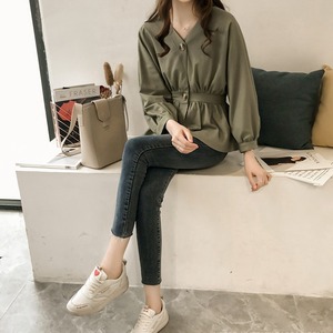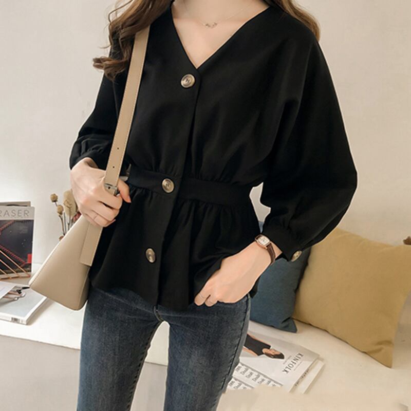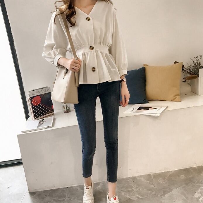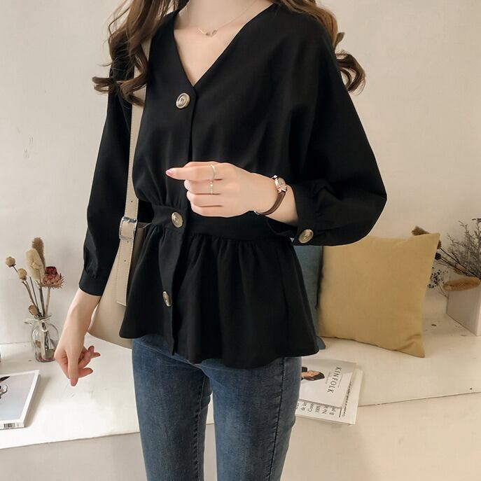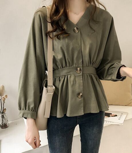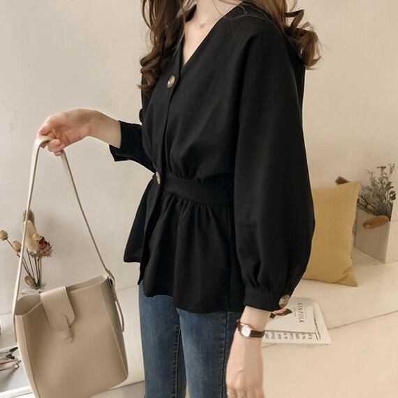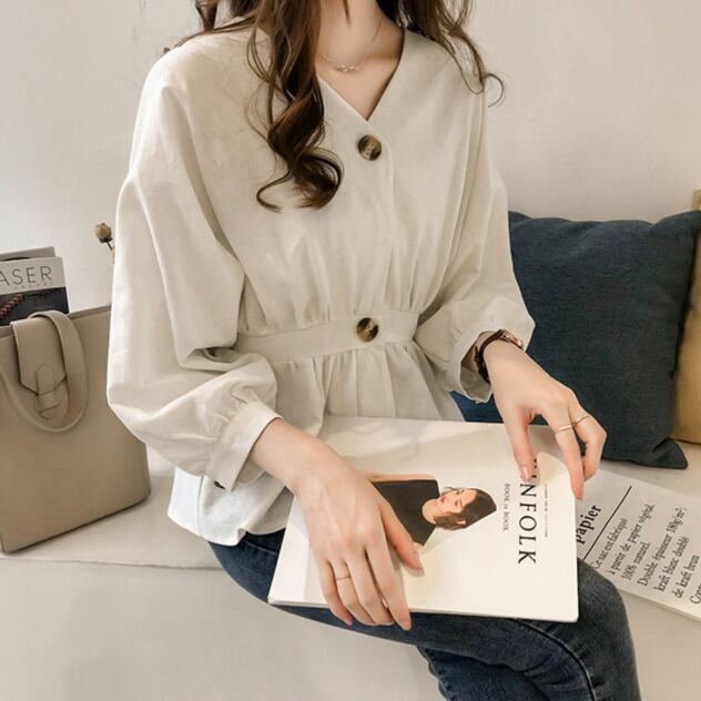 トップス シャツ ブラウス レギュラー丈 袖あり 長袖 パフスリーブ Vネック フレア ギャザー ウエストマーク 前開き きれいめ シンプル カジュアル 大人 おしゃれ かっこいい レトロ こなれ感 ラフ キュート ルーズ 個性的 ラグジュアリー 抜け感 無地 春 秋 会議 プレゼン 20代 30代 40代 レディース 女性用 オフィス ビジネス OL 通勤 デート お出かけ 休日 ショッピング 合コン カフェ 着回し 普段使い