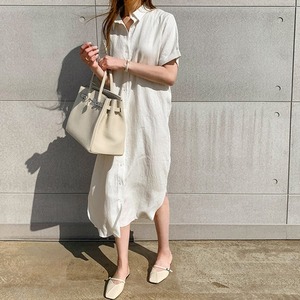 きちんと感漂う、シャツタイプのロングワンピースは、休日感のようなリラクシーな装い。