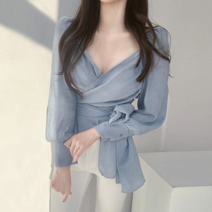 トップス ショート ショート丈 袖あり 長袖 ボリューム袖 パフスリーブ Vネック 襟なし ノーカラー リボン 透け感 コンサバ シフォン きれいめ シンプル カジュアル 上品 おしゃれ レトロ こなれ感 ラフ ルーズ 都会的 セクシー ラグジュアリー 抜け感 無地 春 秋 20代 30代 40代 レディース 女性用 オフィス ビジネス OL 通勤 休日 パーティー 旅行 バカンス ホテル レストラン 特別 合コン 着回し 普段使い