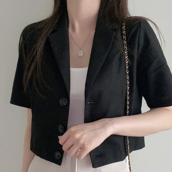 ジャケット 上着 羽織り スーツ ショート ショート丈 半袖 襟付き ワイド 前開き コンサバ 薄手 シンプル カジュアル 大人 おしゃれ かっこいい レトロ こなれ感 ラフ ルーズ 都会的 クール シック ラグジュアリー 抜け感 無地 夏 20代 30代 40代 50代 60代 レディース 女性用 オフィス ビジネス OL 通勤 デート お出かけ 休日 パーティー 旅行 合コン 着回し 普段使い レイヤード 楽ちん 体型カバー