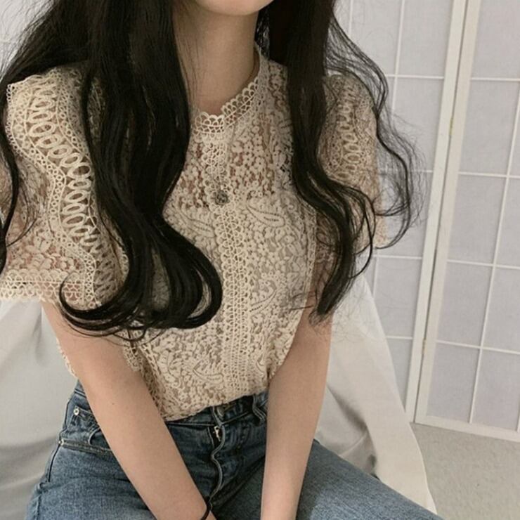トップス カットソー プルオーバー 半袖 モックネック 透け感 レース 薄手 きれいめ シンプル カジュアル おしゃれ レトロ こなれ感 ラフ ガーリー 個性的 ラグジュアリー 存在感 柄 夏 10代 20代 30代 レディース 女性用 オフィス ビジネス OL 通勤 デート お出かけ 休日 リゾート 旅行 特別 合コン 着回し 普段使い 重ね着 レイヤード 韓国系 モテ 清楚 トレンド S M L ゆったり ホワイト ブラック