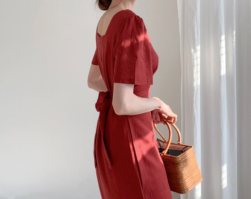 ウエストのバックリボンがアクセントになっています。バックスリットも嬉しいポイントです。大人女子にはもちろん、10代からもおしゃれに着こなせるデザイン。お呼ばれやレストランデートにもマッチします。さらに、モテ度もUPする着回し力抜群のアイテムです。
