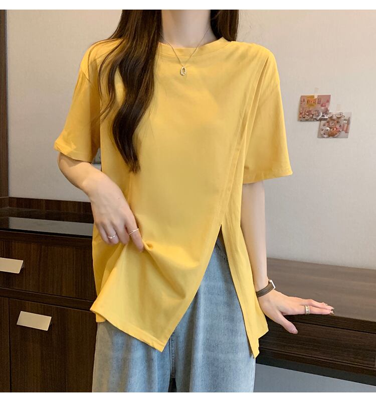 スリットTシャツ トップス Tシャツ シャツ 白シャツ 白トップス 袖あり 半袖 ラウンドネック 襟なし スリット お得 かわいい 大人可愛い シンプル カジュアル 大人 おしゃれ お洒落 大人女子 ラフ 存在感 ベーシック 無地 春 夏 秋 ロングシーズン 10代 20代 30代 40代 レディース 女性用 ママ 学生 デート お出かけ 女子会 休日 運動 ジム ヨガ アウトドア ショッピング ランチ 公園 着回し 普段使い 重ね着 楽ちん モテ S M L XL ホワイト ブラック パープル イエロー