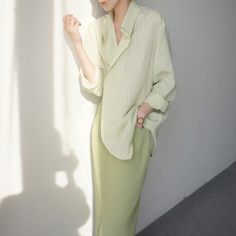 トップス スカート シャツ ロングスカート ミモレ ミモレ丈 ロング ロング丈 長袖 襟付き ストレート Iライン 配色 ポケット 前開き コンサバ 薄手 上下セット ツーピース きれいめ シンプル カジュアル 上品 おしゃれ かっこいい レトロ こなれ感 ラフ 都会的 ラグジュアリー 存在感 無地 ストライプ 春 秋 20代 30代 40代 50代 60代 レディース 女性用 オフィス ビジネス パーティー レストラン 合コン 婚活