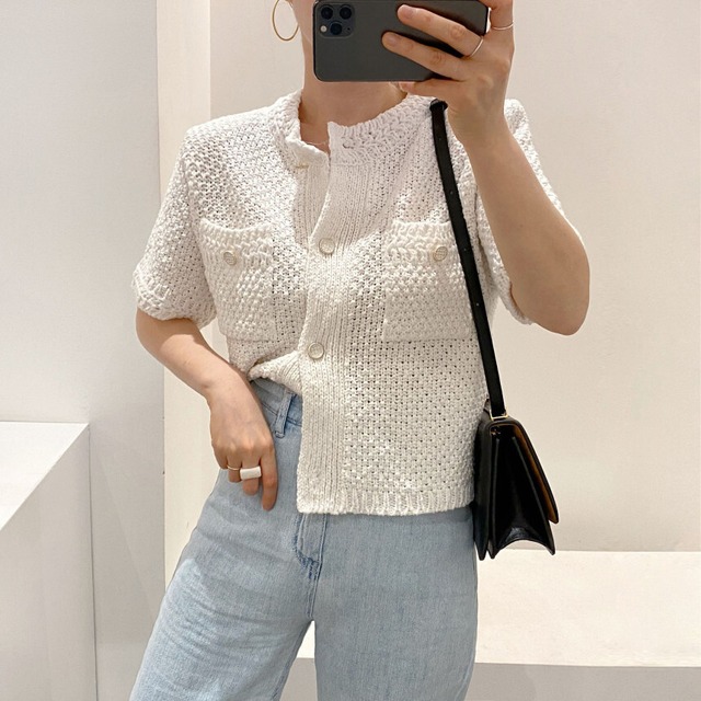 ニットカーディガン トップス カーディガン 白トップス 袖あり 半袖 ラウンドネック 襟なし ポケット 前開き 胸ポケット お得 かわいい 大人可愛い きれいめ 大人 上品 おしゃれ お洒落 大人女子 ラブリー キュート ガーリー 存在感 無地 春 夏 秋 ロングシーズン 10代 20代 30代 40代 レディース 女性用 オフィス ビジネス OL 通勤 学生 デート お出かけ 女子会 休日 レストラン ショッピング ランチ お呼ばれ 着回し 普段使い 重ね着 モテ フリーサイズ ワンサイズ 白 ホワイト