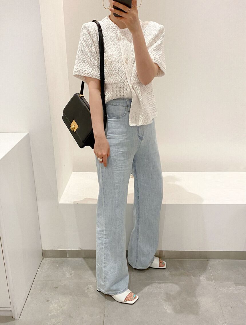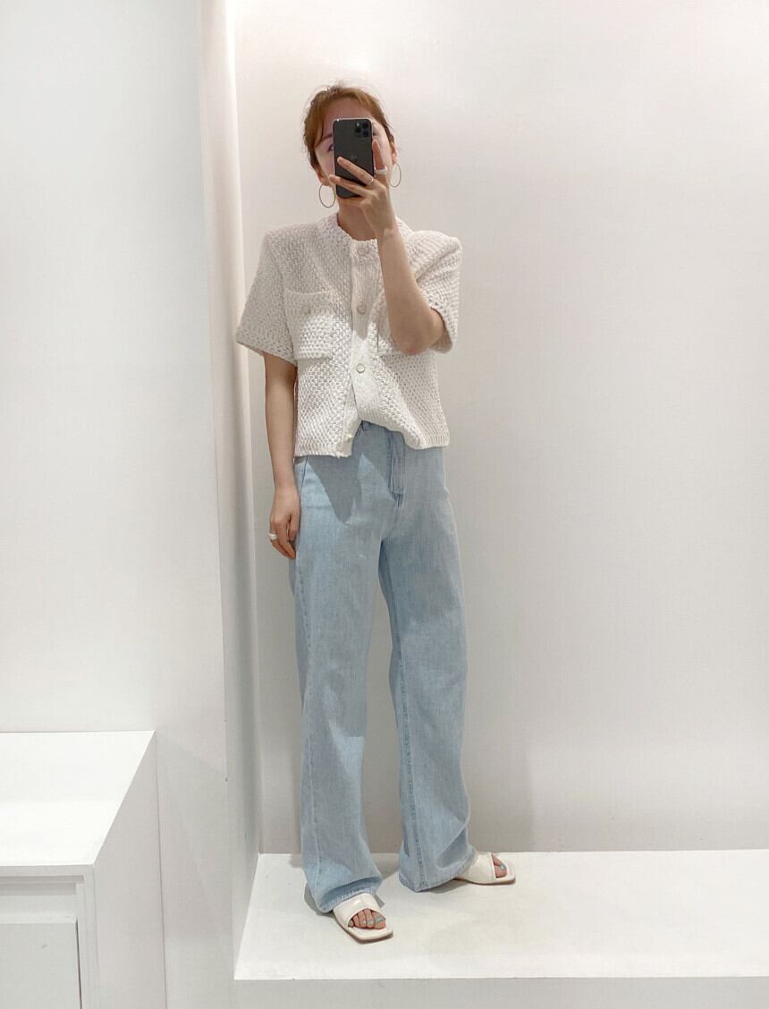 トップスとしてもジャケットとしても使える便利なアイテム。白色は清潔感があって上品な印象を与えます。無地でも存在感があり、着回し力が高いのも魅力です。