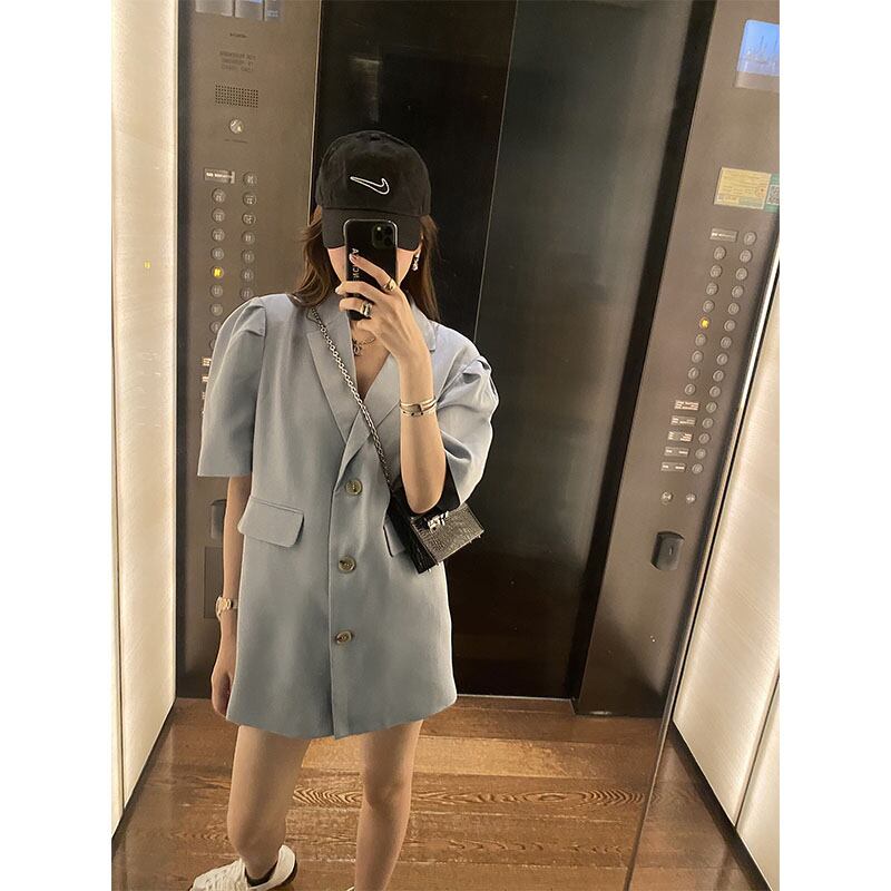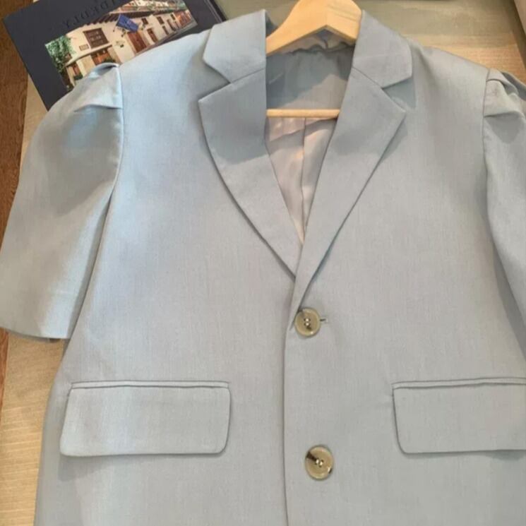 ジャケット 上着 羽織り スーツ 半袖 5分袖 五分袖 パフスリーブ 襟付き ストレート ワイド 前開き コンサバ シンプル カジュアル おしゃれ かっこいい レトロ こなれ感 ラフ マニッシュ ルーズ 都会的 ラグジュアリー フォーマル 無地 春 夏 10代 20代 30代 レディース 女性用 お出かけ 休日 パーティー イベント 旅行 ショッピング 合コン 着回し 普段使い レイヤード 楽ちん 体型カバー 清楚 トレンド ゆったり