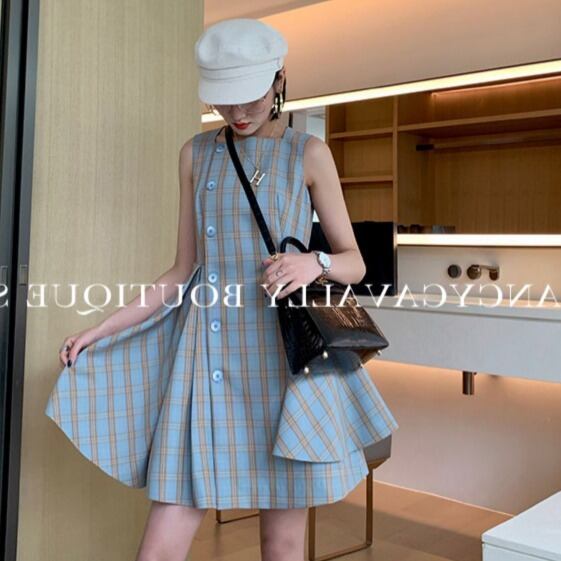 ワンピース ショート ショート丈 膝上 袖なし ノースリーブ スクエアネック 襟なし ノーカラー フレア Aライン アシンメトリー アシメ バイカラー 配色 大人可愛い きれいめ カジュアル 上品 おしゃれ レトロ こなれ感 ラフ キュート ガーリー 個性的 都会的 ラグジュアリー 存在感 抜け感 チェック柄 夏 10代 20代 30代 レディース 女性用 デート お出かけ 休日 パーティー イベント 旅行 ショッピング 特別 韓国系