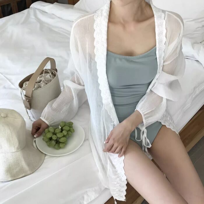 べーシックで優しいカラーリングのシンプルな水着は、バックコンシャスなデザインが目を惹き、きれいめなスタイルからカジュアルな装いまで幅広いスタイリングに対応し、程よい大人の魅力を演出してくれます。シンプルなデザインでありつつ、レトロな雰囲気やキュートな要素も感じられる水着は幅広い世代の方に着用して頂けるデザインになっています。