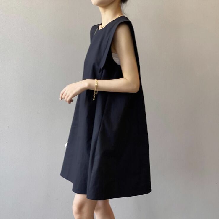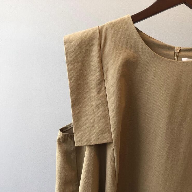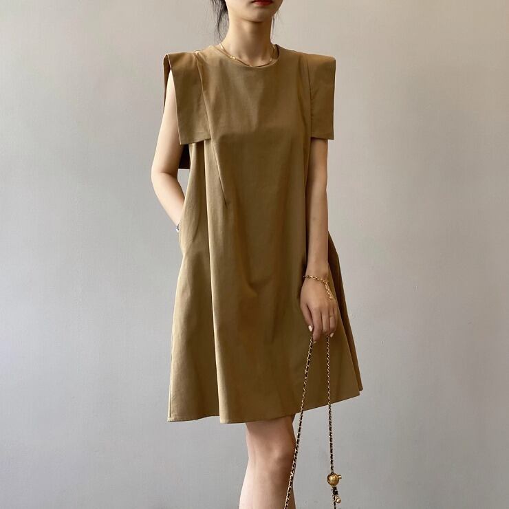 スリーブラインが個性感漂うリラクシーなワンピース。キャップスリーブのようなデザインの個性派好きなおしゃれさんにおすすめな1枚です。アームホールが広めにデザインされているから、レイヤードスタイルにも◎ モード系スタイルにもぴったり。落ち着きのある大人カラーの展開にシンプルデザインのワンピースだから幅広い世代の方に愛用して頂けますよ◎