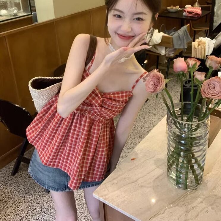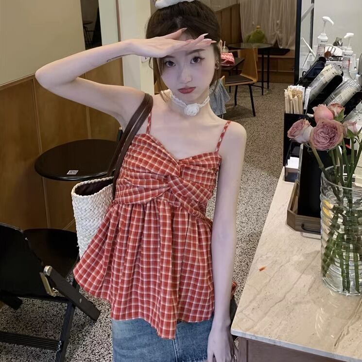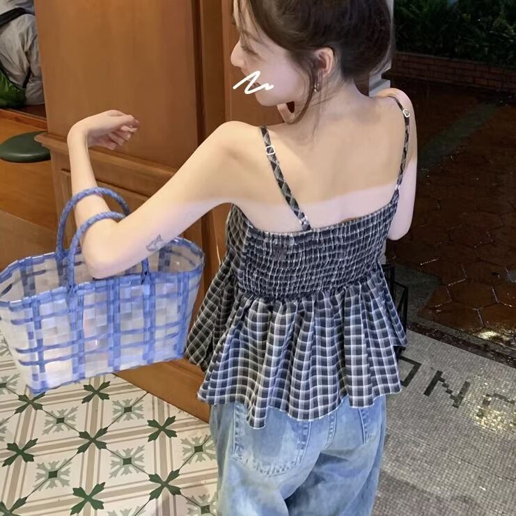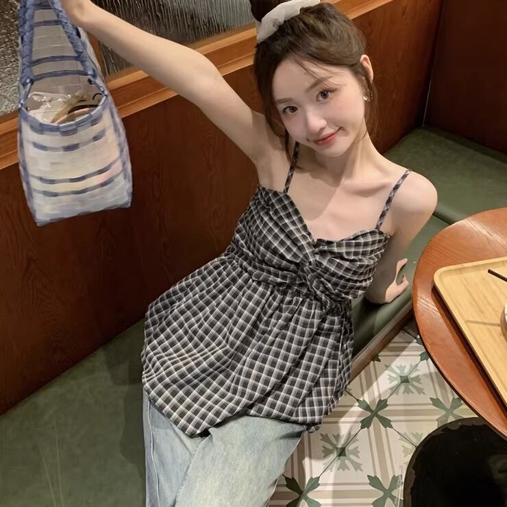 キャミソール レギュラー丈 袖なし 襟なし ノーカラー バンドゥ フレア Aライン 薄手 かわいい 大人可愛い カジュアル おしゃれ レトロ 大人可愛い こなれ感 ラフ ラブリー キュート ガーリー ルーズ 個性的 存在感 抜け感 ナチュラル アクティブ 活発 お茶目 幼げ 若見え チェック柄 夏 10代 20代 30代 レディース 女性用 女の子 学生 お出かけ 休日 アウトドア イベント リゾート 海 プール バカンス ショッピング アスレチック 着回し 普段使い 楽ちん トレンド 体型カバー