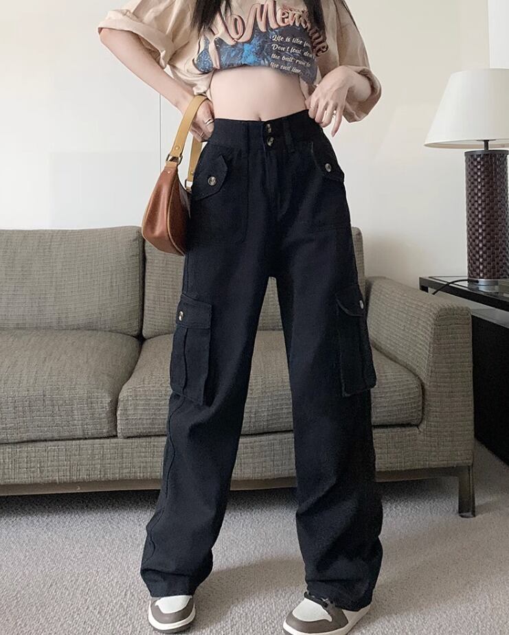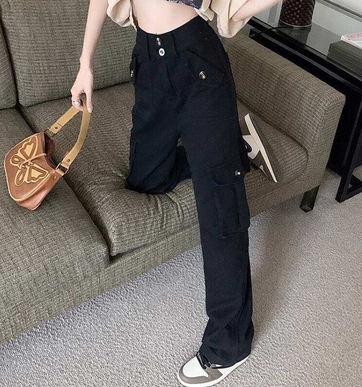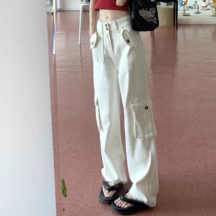ボトムス パンツ ワイドパンツ ストレートパンツ カーゴパンツ ロング ロング丈 マキシ マキシ丈 ストレート ワイド Iライン オーバーサイズ ポケット ハイウエスト 前開き ボタン シンプル カジュアル おしゃれ かっこいい レトロ こなれ感 ラフ メンズライク ボーイッシュ スポーティー ルーズ 個性的 抜け感 アクティブ ストリート 活発 無地 春 夏 10代 20代 30代 40代 レディース 女性用 ユニセックス ジェンダーレス アウトドア ダンス アクティビティ キャンプ 着回し 普段使い