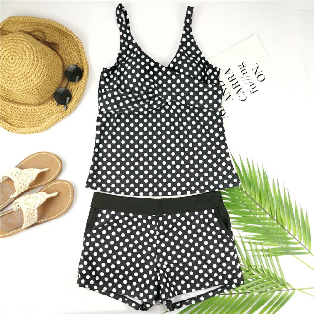 水着 レディース 送料無料 タンキニ セパレート 上下セット カラバリ3色 ビキニ 2点セット Vネック エスニック アジアン レトロ ドット ポケット付き 水玉 おしゃれ キャミソール ビキニショーツ ショートパンツ フロントクロス 個性的 韓国 華やか 大人っぽい 個性的 存在感 大人 かわいい 10代 20代 30代 40代 ママ 体型カバー オルチャン 韓国 ブラック グリーン ダークグリーン S M L XL ファッション