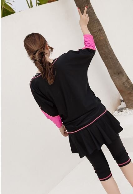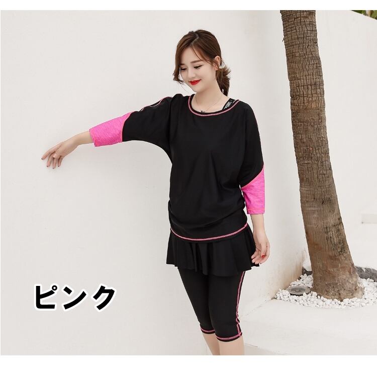 日焼け対策に便利なスポーツウェアのような水着セットです。