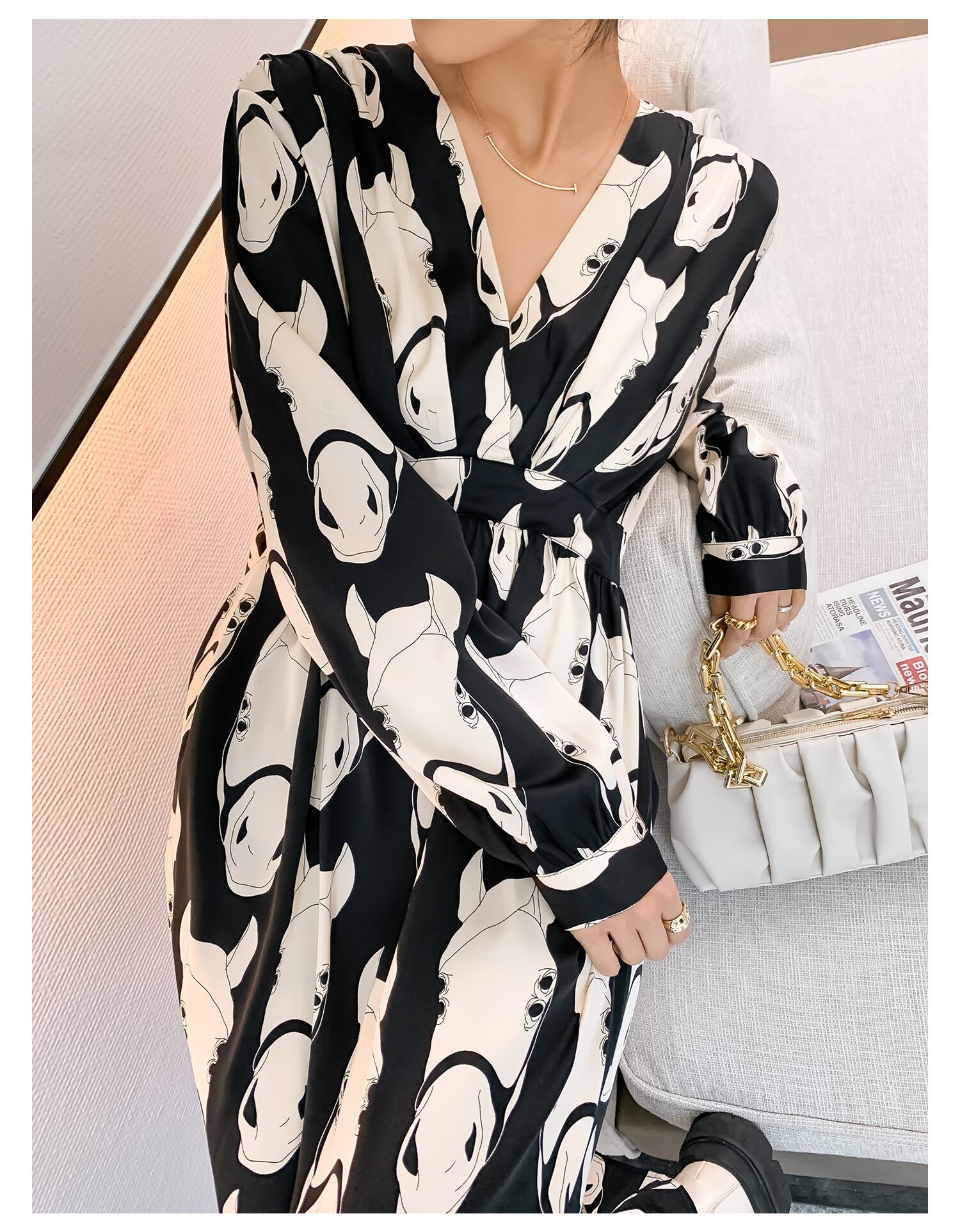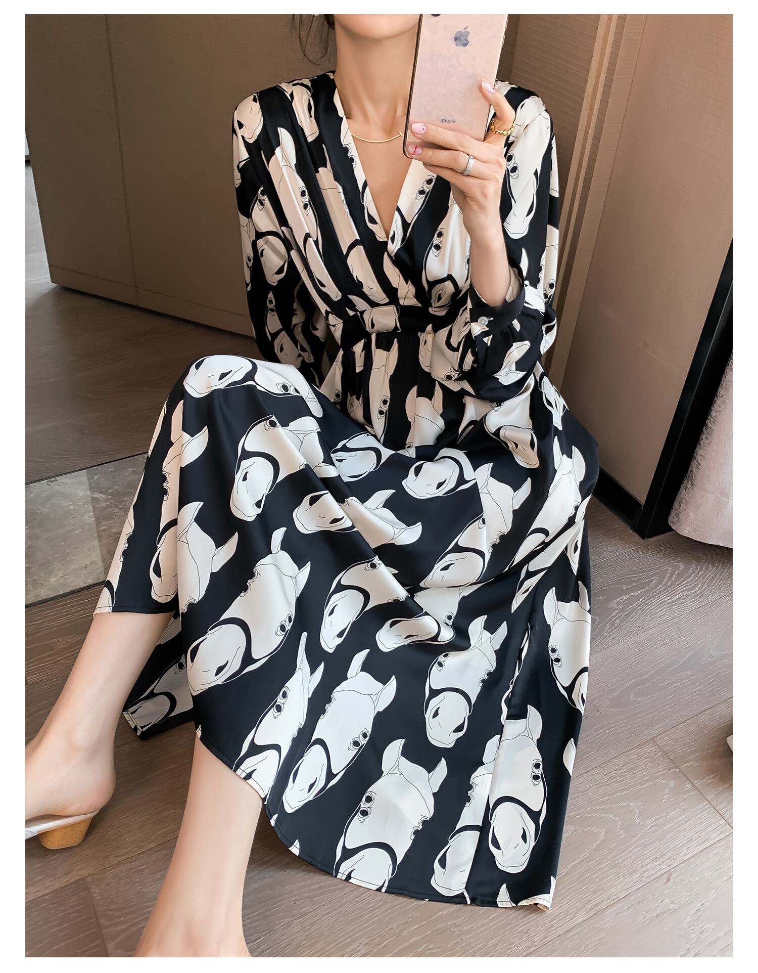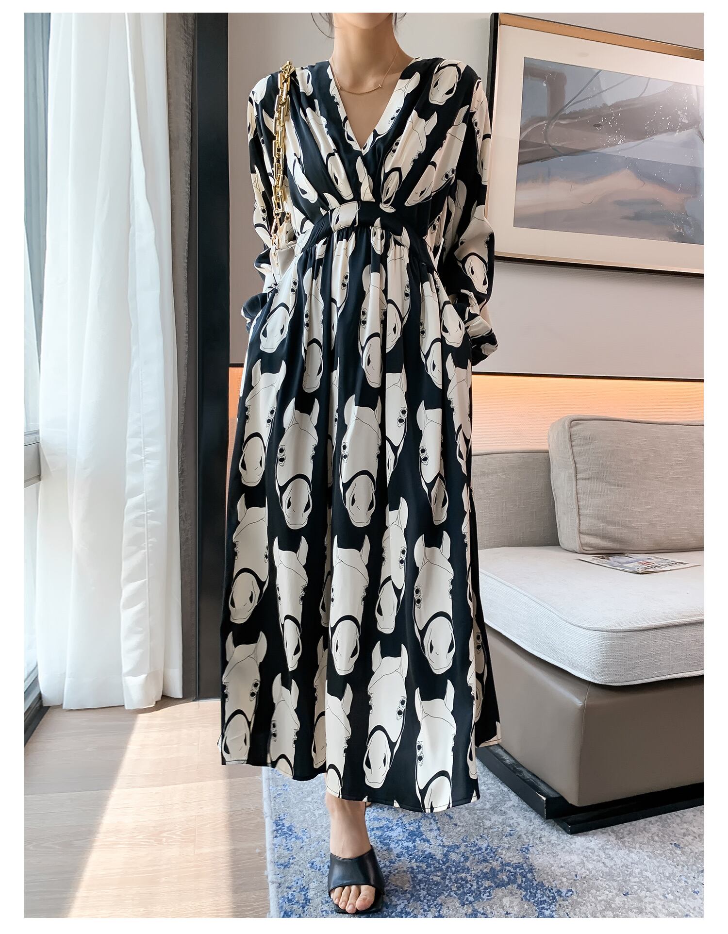 個性的なホースプリントがシックでフェミニンなフレアワンピース。