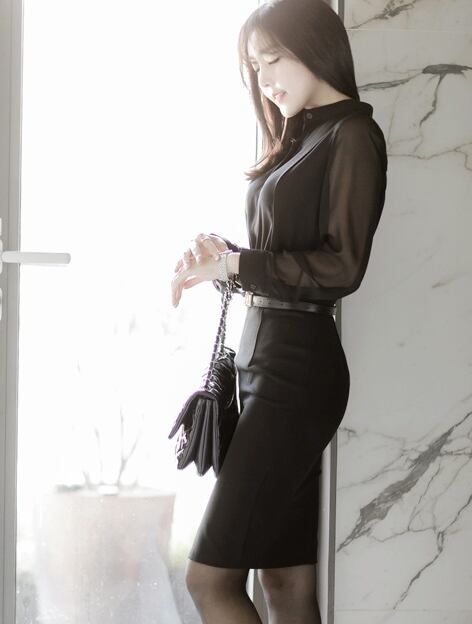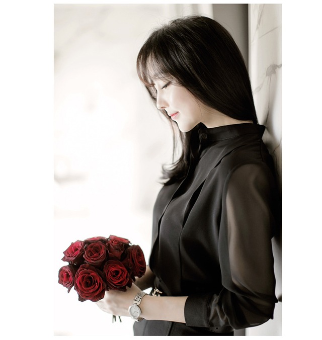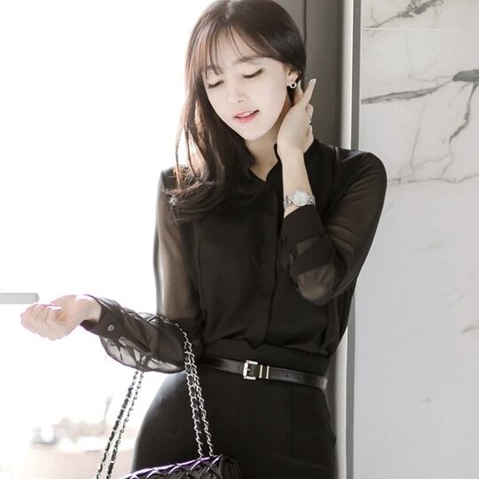 袖の透け感がセクシーかつ上品なフェミニンブラウス。