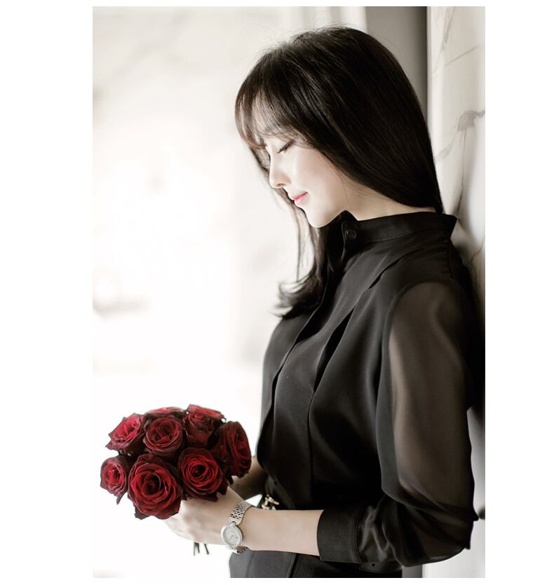 トップス レディース 送料無料 ブラウス シャツ スタンドカラー切り替え バイカラー フリル襟 長袖 シフォン トランペットスリーブ 透け感 シアー 襟なし ーポリエステル ブラック 単色 透け感 こなれ感 抜け感 ガーリー かわいい 可愛い 涼し 通気性 キュート 上品 エレガント きれいめ ラブリー 女の子 お洒落 おしゃれ 春 春服 夏 夏服 10代 20代 デート おでかけ モテ 女子会 普段使い 着回し 重ね着 韓国系 オルチャン ブラック S M L XL 2XL 大きいサイズ