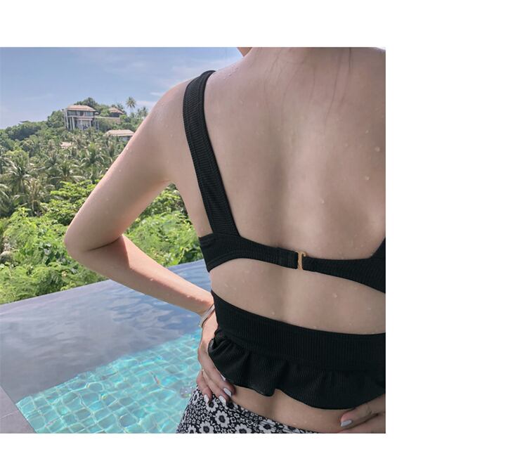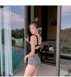 水着 レディース セパレート タンキニ サーフィン ボディボード マリンスポーツ ビキニ スイムウェア バックオープン 花柄 ペプラム ショート丈 キャミソール ビスチェ キャミソール スリム タイト 細身 伸縮性 胸元 谷間 ドレープ セット 上下セット 2点セット ツーピース 大人可愛い きれいめ シンプル カジュアル 大人 おしゃれ レトロ キュート クール スタイリッシュ かっこいい 都会的 アクティブ スポーティ 無地 配色 バイカラー 20代 30代 夏 海 ビーチ プール リゾート ブラック