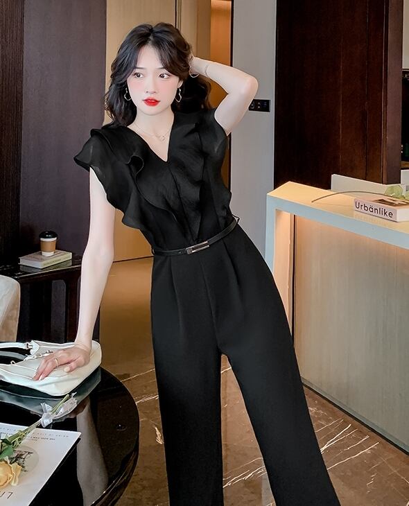 オールインワン パンツスーツ レディース ノースリーブジャケット Vネック 2色 送料無料 セットアップ フリル ロンパース フリル ドレッシー パーティ 大人可愛い かわいい きれいめ 大人女子 エレガント デコルテ 無地 春 夏 ガーリー お出かけ きれいめカジュアル 着回し ファッション デート コーディネート 重ね着 休日 特別な日 お祝い 記念日 カジュアル シンプル スタイル オフィスカジュアル 10代 20代 30代 ブラック カーキ S M L XL 2X