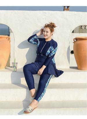 日焼け対策に便利なスポーツウェアのような水着2点セットです。