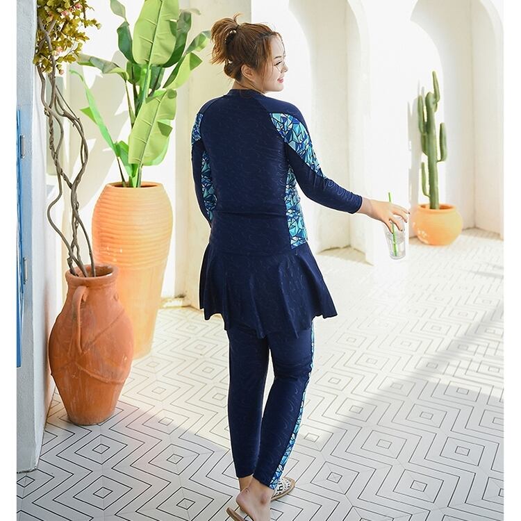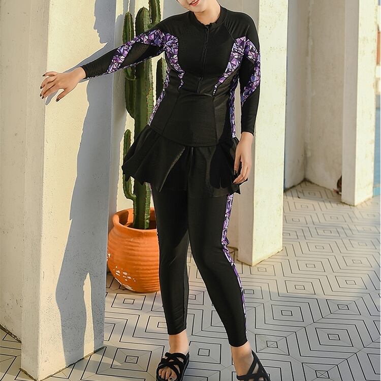 水着 レディース 送料無料 2色 ラッシュガード ハーフパンツ トップス スカート付き レギンス 長袖 ビーチグッズ ジップ 切り替え 柄 フィットネス水着 セットアップ 2点セット 体型カバー 細見え くびれ ライン 日焼け対策 スポーティー かっこいい カッコイイ 大きいサイズ ビッグサイズ プラスサイズ ブラック 3XL 4XL 5XL 夏 サマー レジャー アウトドア 海 リゾート ビーチ マリンスポーツ 動きやすい 楽ちん 旅行 定番 10代 20代 30代 大きいサイズ ブラック ブルー