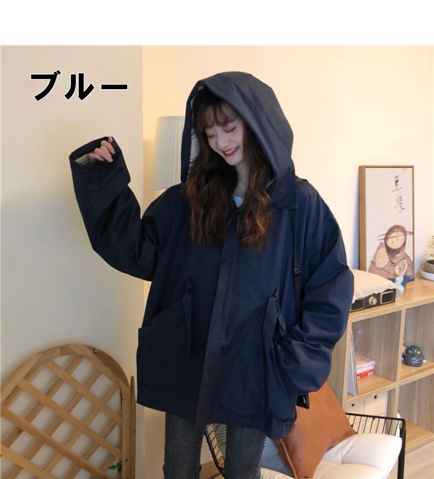 アウター レディース 送料無料 2色 ブルゾン ジャケット ウインドブレーカー ジャンパー 長袖 フード付き スポーティ ラグランスリーブ ハイネック ドローストリング おしゃれ かわいい オーバーサイズ ゆったり ビッグシルエット メンズライク カジュアル ラフ こなれ感 無地 普段使い 流行 カーキ ブルー S M L