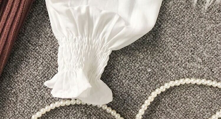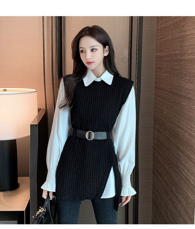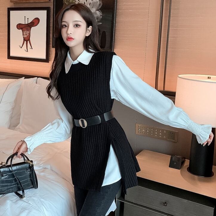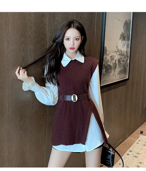 キャンディースリーブシャツとニットベストのセットアイテム。