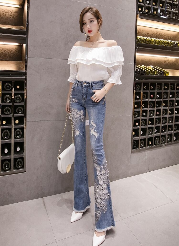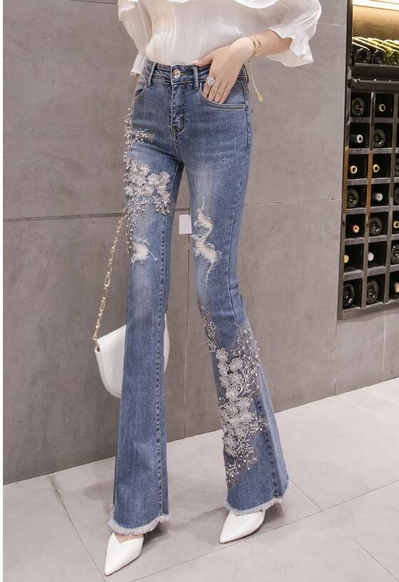 ボトムス レディース 送料無料 セミフレア ケミカルウォッシュ ハイライズ ハイウエスト フリンジ カットオフ ビジュー 花柄 パール ビーズ 刺繍 ワイド スリットセミフレア ダメージパンツ ジーパン 着痩せ 体型カバー インスタ トレンド きれいめ かっこいい かわいい クール アクティブ お出かけ メンズライク ルーズ こなれ感 ストレートデニム ウォッシュデニム 洗い加工 スプリット スリット ウォッシュ ハイウエスト ワイドパンツ ラフ ナチュラル アメカジ ジーンズ ライトブルー
