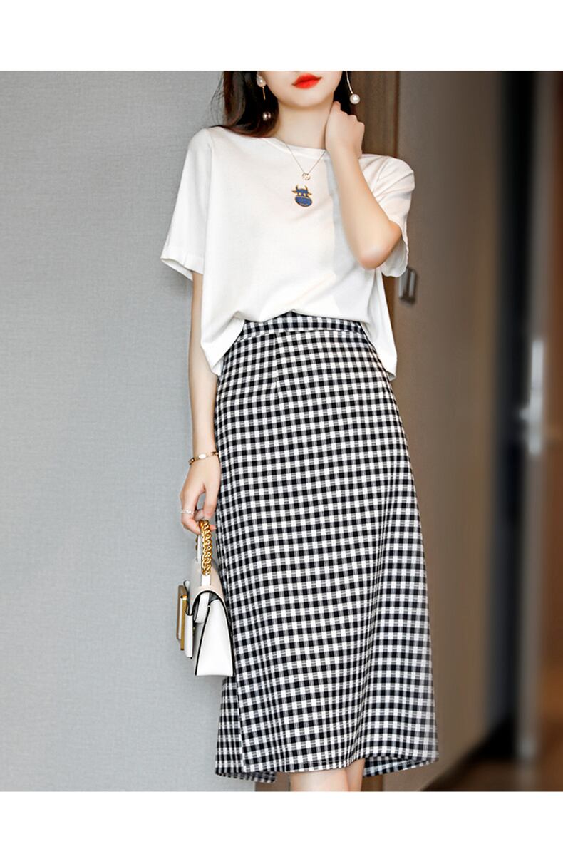 スカート レディース 送料無料 ペンシルスカート チェック 台形スカート ミディアム丈 ダーツ バックスリット ミディアム丈 ハイライズ ハイウエス リラックス カジュアル ハイウエスト おしゃれ ナチュラル かわいい かっこいい こなれ感 スタイル 小顔見せ 着痩せ 体型カバー インスタ トレンド きれいめ チェック パッチワーク モノトーン ブラック 黒 エレガント ルーズ ゆったり 大人かわいい 上品 ゆる オフィス 通勤 OL デート お出かけ 旅行 カフェ S M L XL