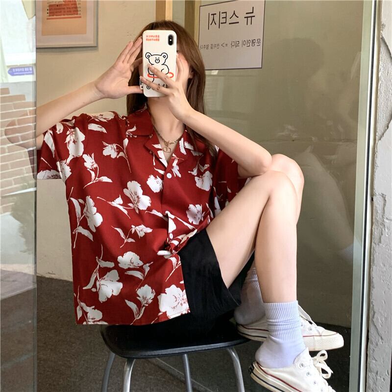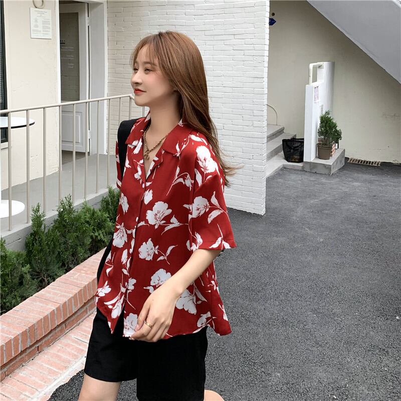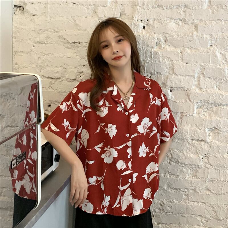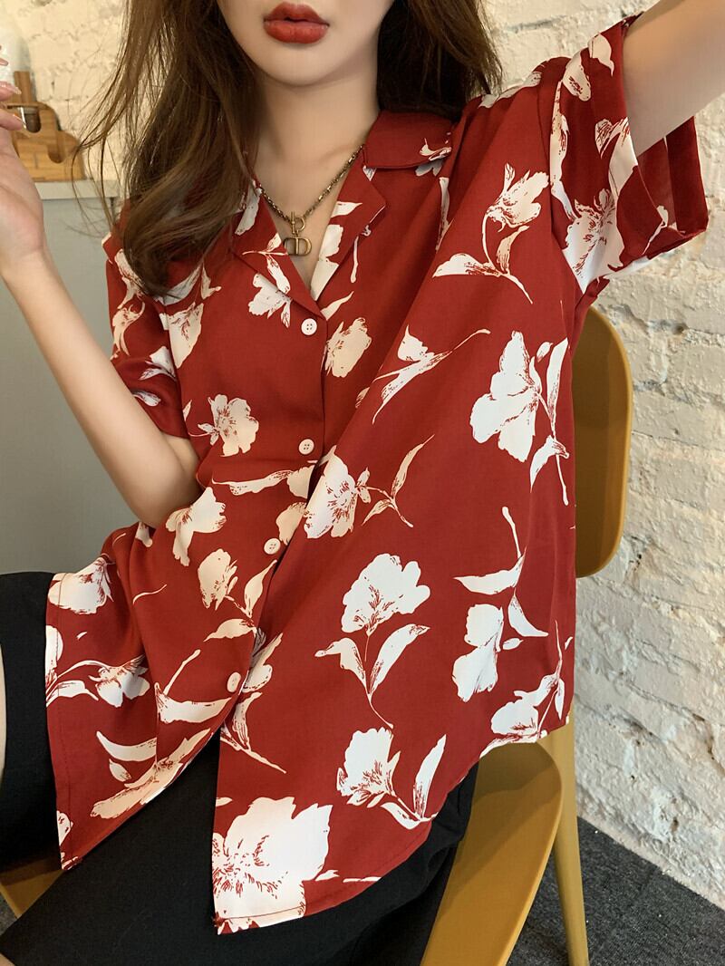 トップス レディース 送料無料シャツ ブラウス レッド 半袖 襟付き 開襟シャツ ボタニカル 花柄 ゆったり ビッグシルエット オーバーサイズ マニッシュ メンズライク 抜け感 こなれ感 シック クール 個性的 華やか 派手 無地 春 秋 10代 20代 普段使い 重ね着 着回し おしゃれ お洒落 ラフ カジュアル 前開き 涼し 通気性 薄手 ポリエステル シフォンシャツ ワイド 存在感 モード系 エキゾチック デート S M L XL