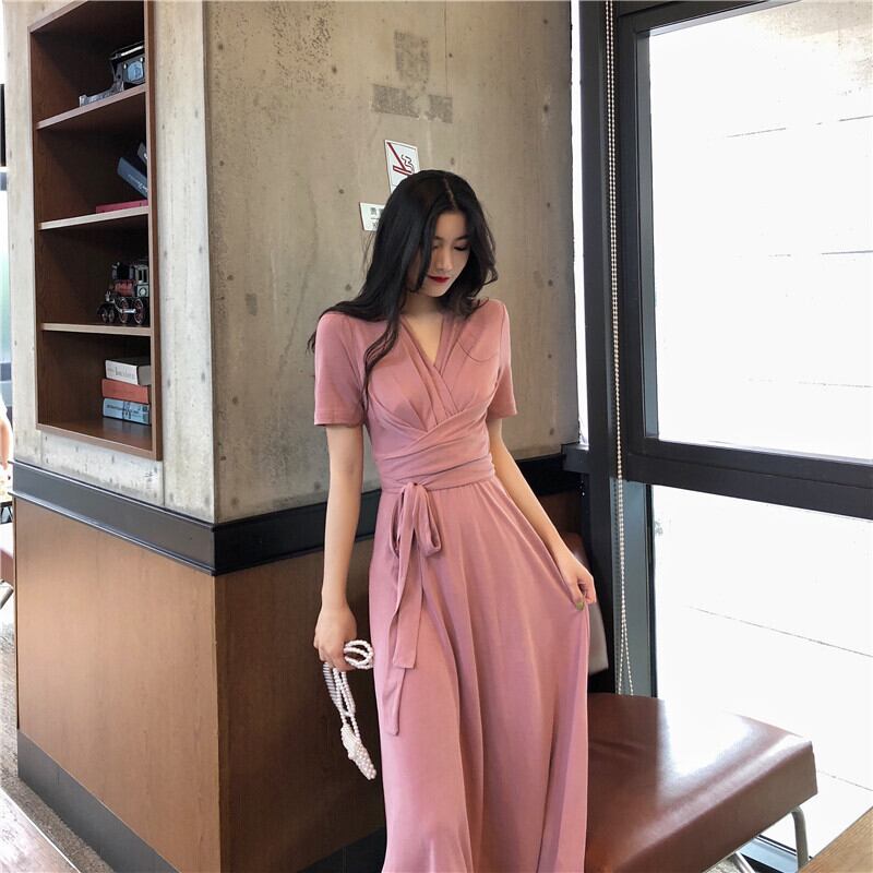 カシュクールの巻き付けデザインが上品なシフォンワンピースです。