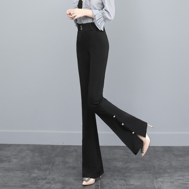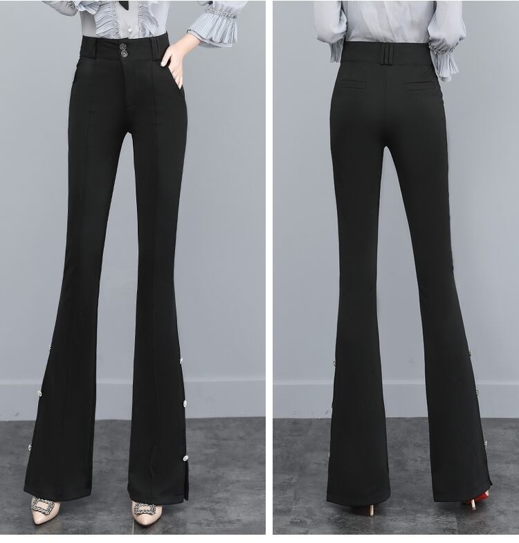 ボトムス レディース 送料無料 パンツ スラックス セミフレア スキニー タイト センタープレス ハイウエスト ボタン サイドスリット セミフレア おしゃれ スタイル 着痩せ 体型カバー インスタ トレンド きれいめ かっこいい かわいい クール アクティブ お出かけ メンズライク ルーズ こなれ感 スプリット スリット ラフ ナチュラル オフィス スーツ S M L XL 2XL 大きいサイズ