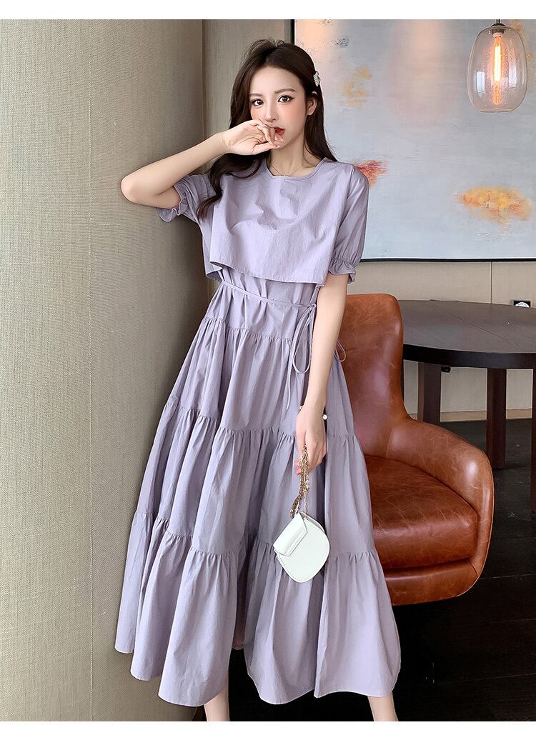 ワンピース レディース 送料無料 3色 フレア ロング丈 ミモレ丈 クルーネック 襟なし 半袖 体型カバー シンプル 大人可愛い きれいめ お洒落 おしゃれ 大人女子 ワンピドレス イベント デート パーティ— 女子会 休日 お出かけ 韓国 オルチャン ファッション コーデ かわいい 大人可愛い きれいめ シンプル 大人 上品 おしゃれ お呼ばれ 二次会 かわいい モテコーデ ベーシック 大人かわいい インスタ トレンド ブラック パープル ピンク モテコーデ