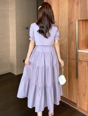 レイヤード風デザインがお洒落なシルエットのティアードワンピース。