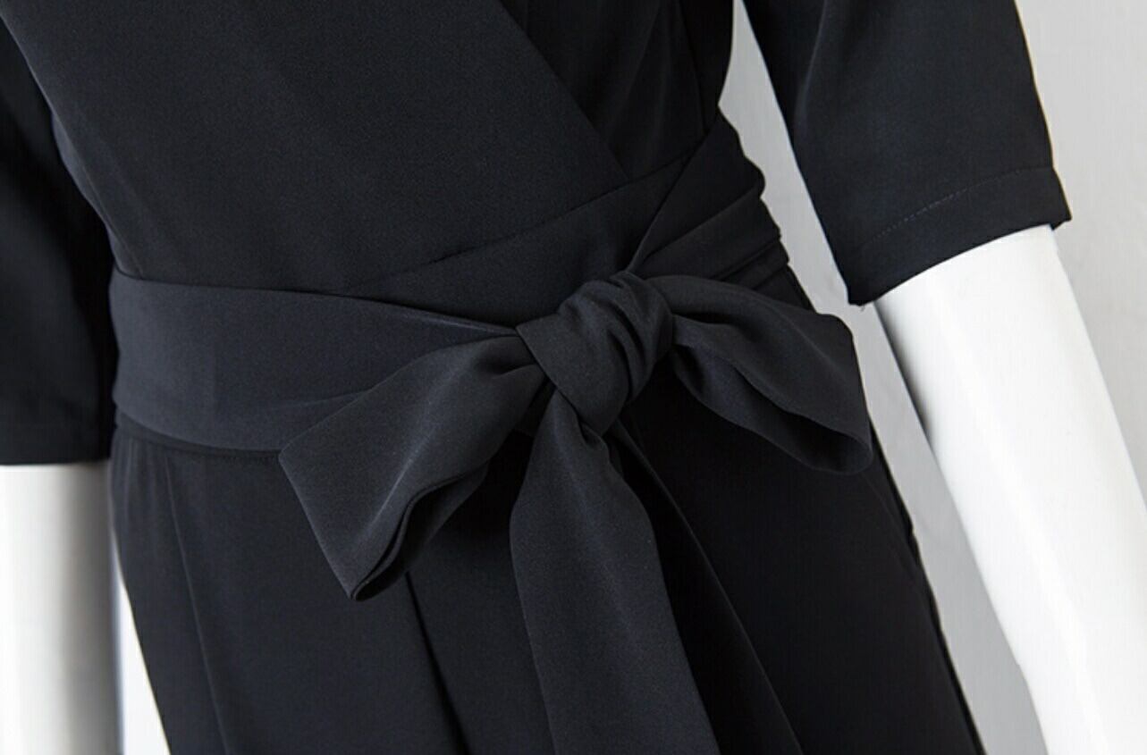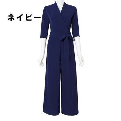 オールインワン ボトムス パンツ ロング丈 襟なし 五分袖 カシュクール タック リボン ベルト Vネック 襟なし リボン ウエストマーク かわいい 大人可愛い きれいめ 大人 上品 おしゃれ お洒落 大人女子 ラブリー キュート 存在感 スマート 無地 春 夏 秋 ロングシーズン 10代 20代 30代 レディース 女性用 デート お出かけ 女子会 休日 イベント ホテル レストラン お茶会 ランチ 普段使い 重ね着 インスタ映え ネイビー ブラック S M L XL 2XL 3XL 大きいサイズ