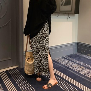 レオパードプリントが大人可愛いスリット入りロングスカート。