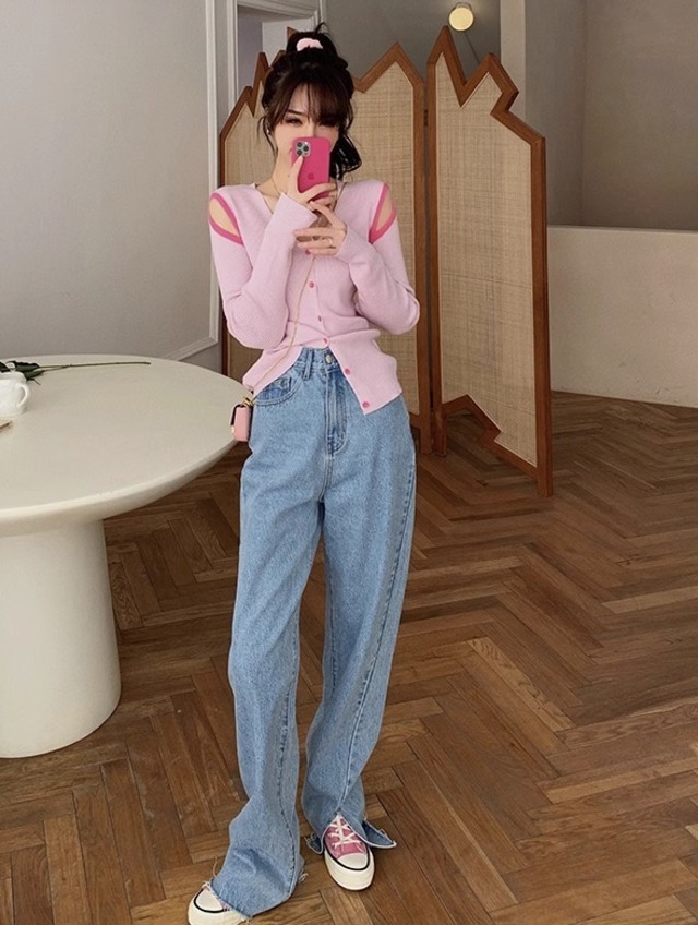 レディース トップス カーディガン 長袖 カットアウェイショルダー Vネック 襟なし ノーカラー スリム 細身 前開き ボタン バイカラー 配色 ニット リブニット ストレッチ 伸縮性 柔らか 大人可愛い シンプル カジュアル おしゃれ こなれ感 ラフ 個性的 存在感 抜け感 キュート ラグジュアリー アクティブ 休日感 フェミニン セクシー ユニーク ニッチ 無地 秋 冬 アウトドア 休日 ショッピング 合コン フェス ダンス 韓国 オルチャン 楽ちん 普段使い 着回し モテ ブラック ピンク 水色